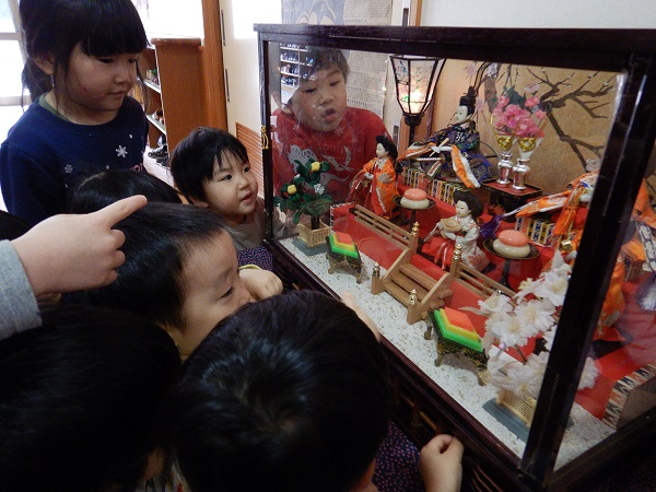 玄関ホールに飾ってある雛人形を見に行ってみました■