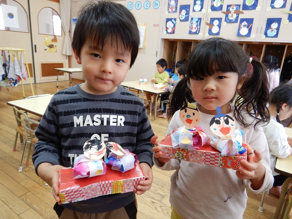 「お内裏様は帽子をかぶってる!」「お雛様は冠つけてるよ!」