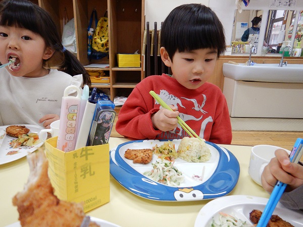お待ちかねの給食の時間♡誕生日スペシャルプレートにも大喜び☆