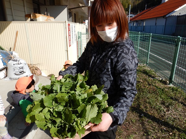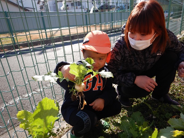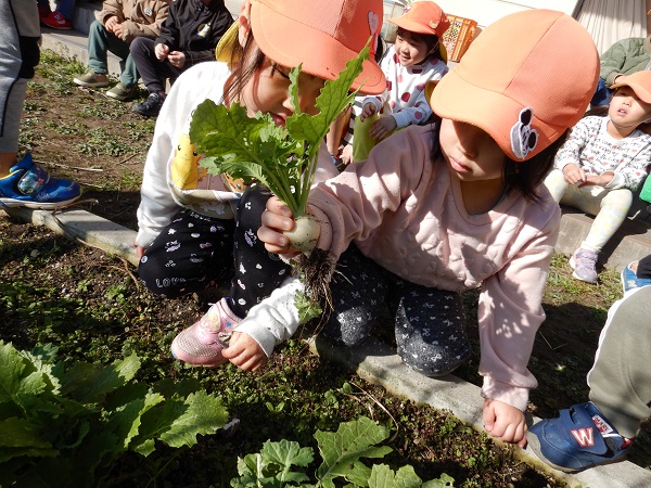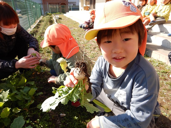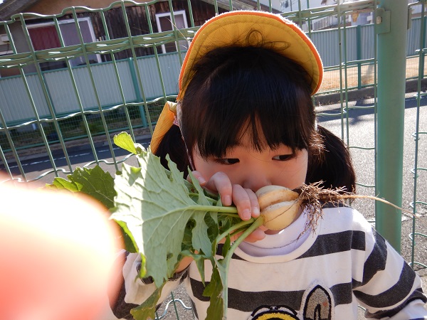 「土のにおいがする」「葉っぱの匂い♪」「かぶのいい匂いがする~」とクンクン♪