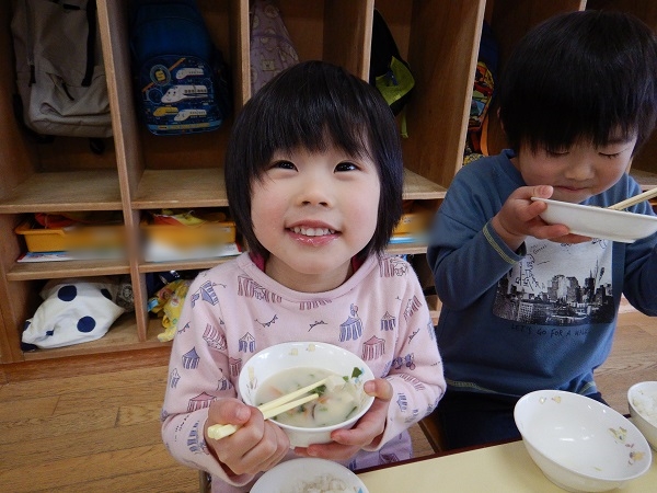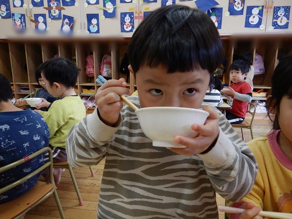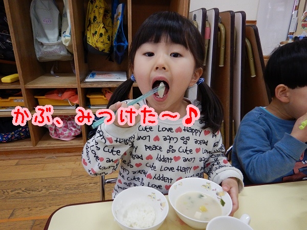『相性汁』の中にみんなが収穫したかぶがたくさん入っていました♪