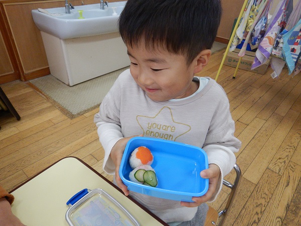口をそろえて「お弁当ごっこの日~」と答えが返ってきましたよ(笑)