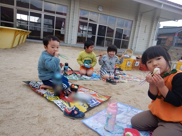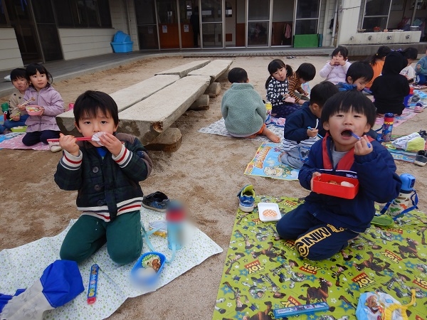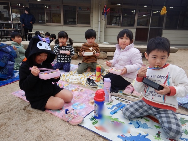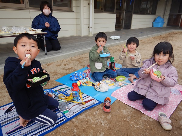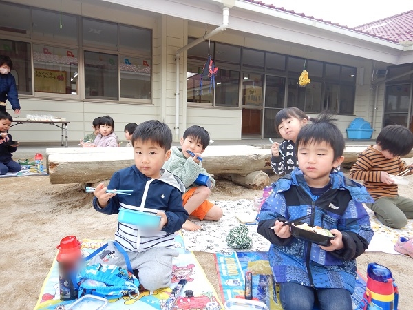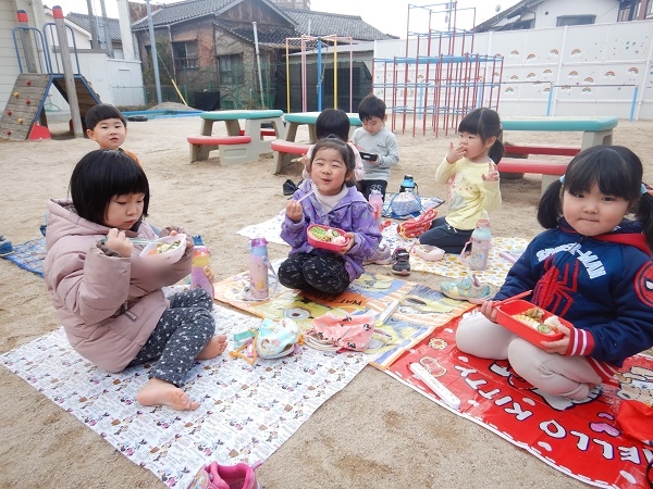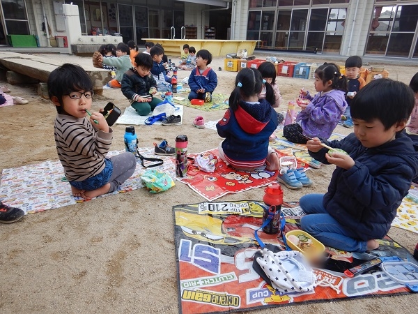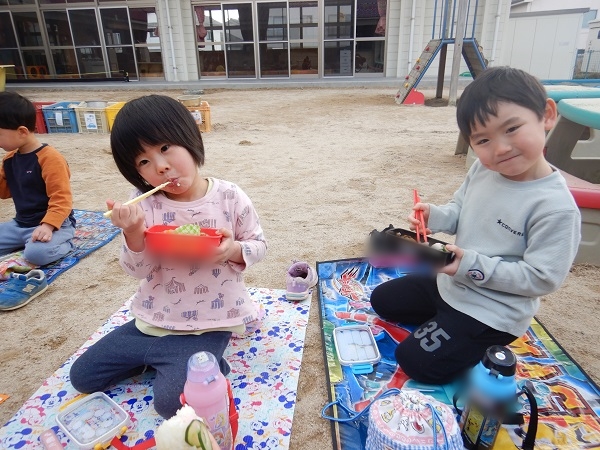 今日は園庭で給食を食べましたよ♪