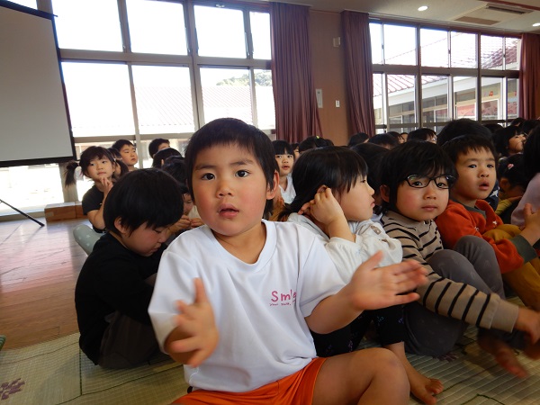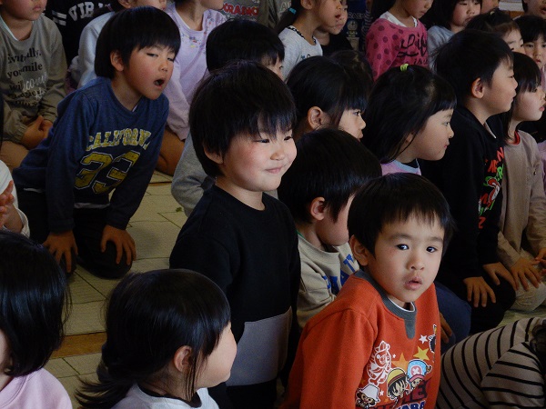 保育者のよる出し物を楽しんだり、