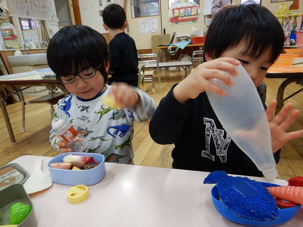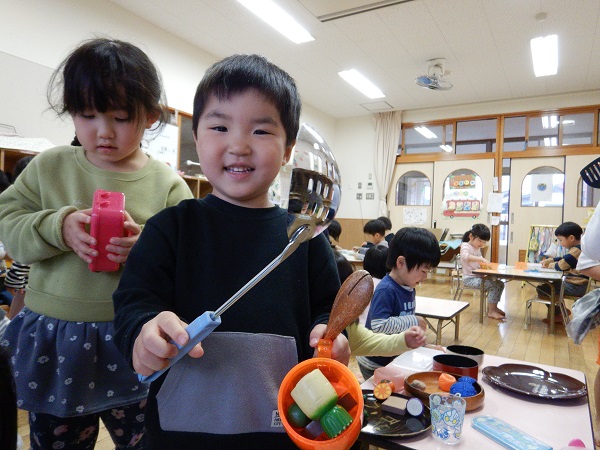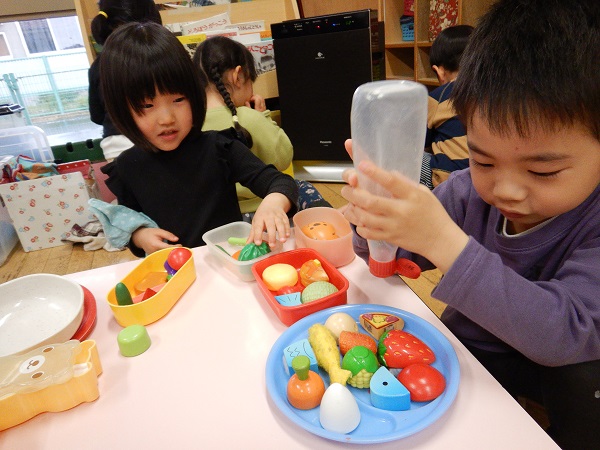 お友だちとワイワイ楽しみながらおままごとは大盛り上がりでした■