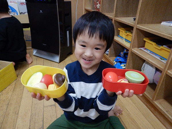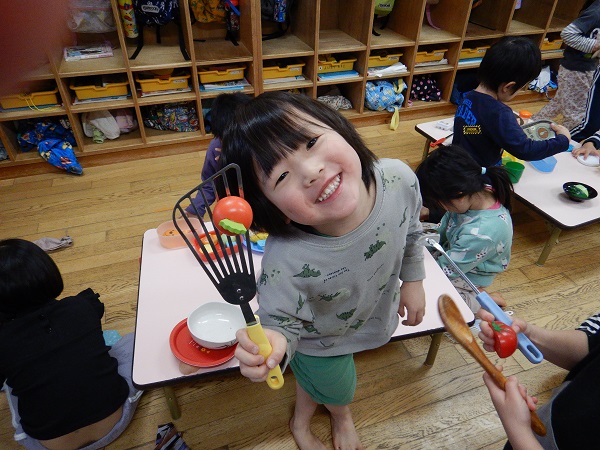 「おままごとしたーい」と言うみんなのリクエストに応えて、大好きなおままごとをして遊びましたよ✨