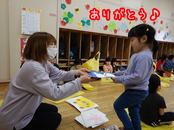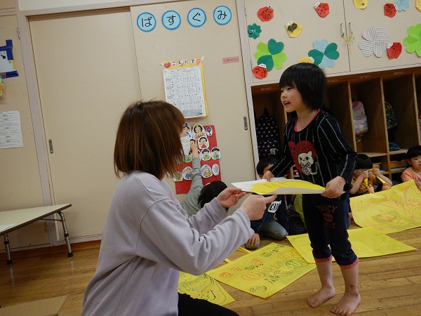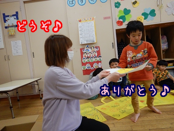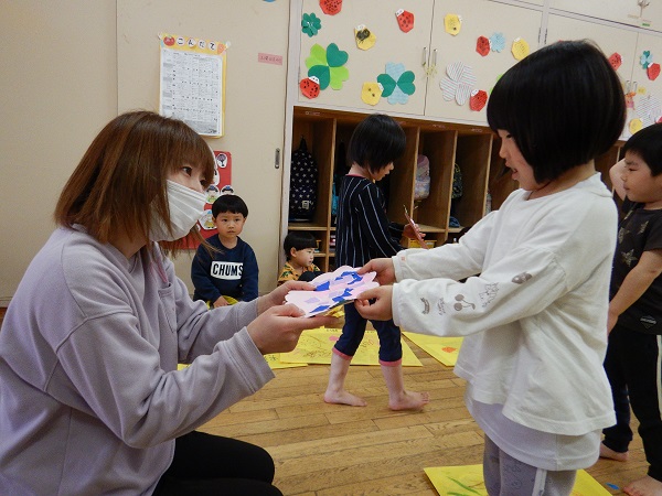 保育者から作品を受け取ると「ありがとう」とお礼も上手に言えていました✨
