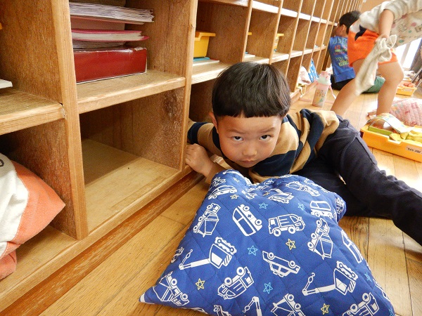 消防士さんの訓練に「頑張れ~!!」と声援を送るばす組さん☆