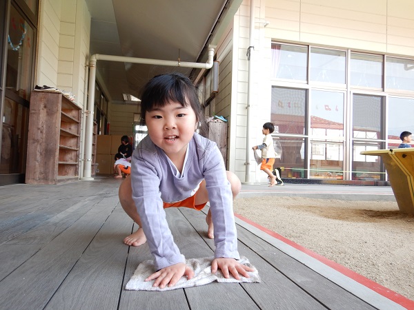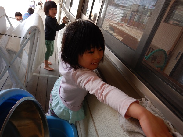 気が付くと「ここも!」「あそこも!」と廊下やテラスまで掃除してくれるばす組さんでした☺