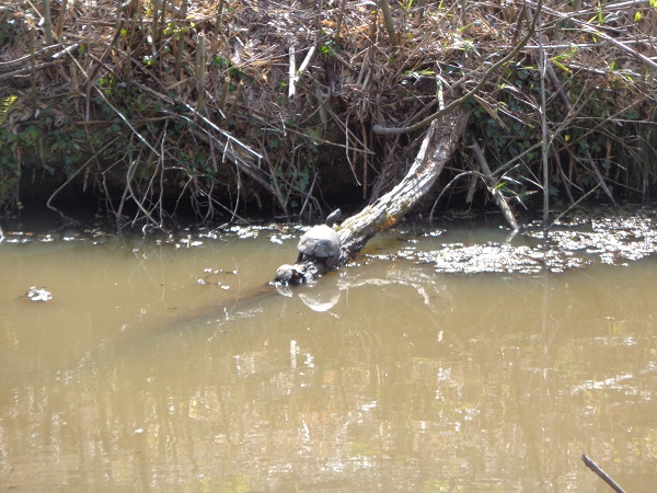 カメの親子が甲羅干しをしていました☺