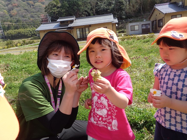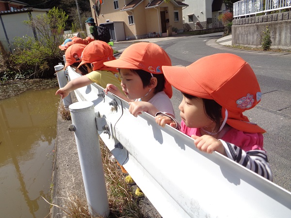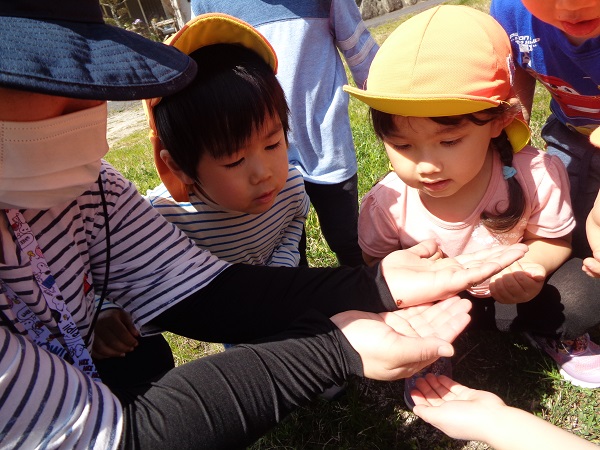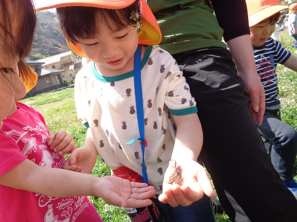 カエルだって触れちゃうたくましいばす組さんです☺