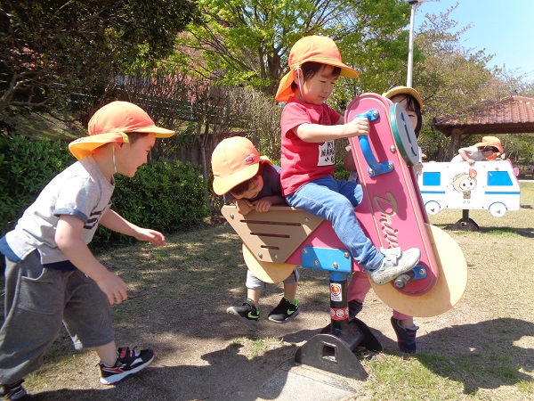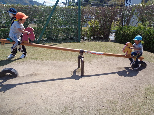 お友だちと仲良くシーソーや車の遊具で遊ぶ姿も見られました☺