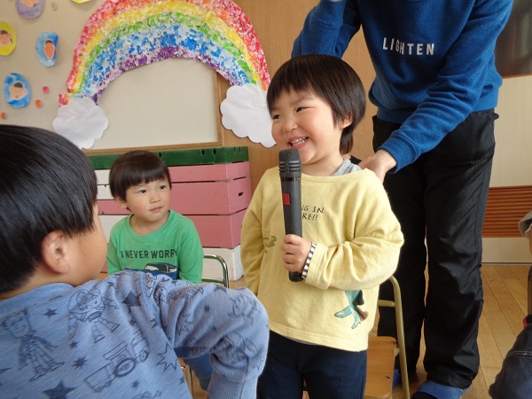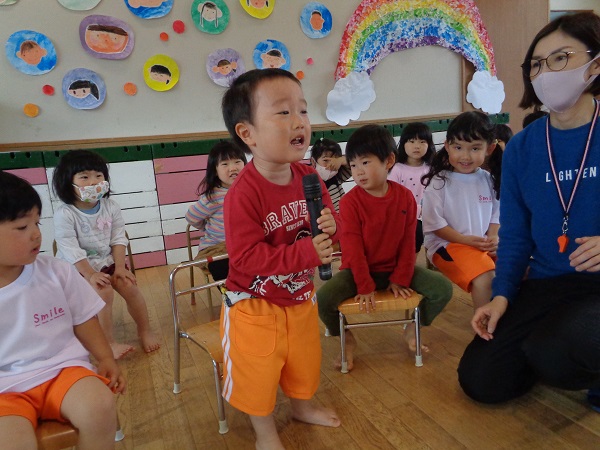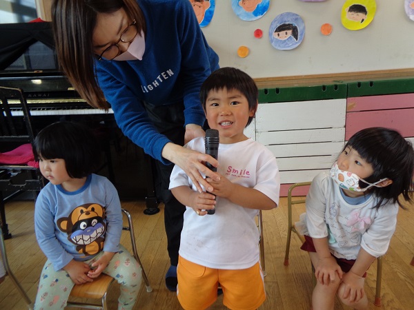 たくさんのお友だちの前で自己紹介☆ドキドキしたけど、大きな声でお名前を言える子がたくさんいましたよ✨