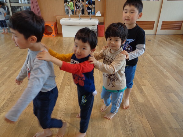 ひざ取りゲームや貨物列車などのふれあい遊びを楽しみました♡