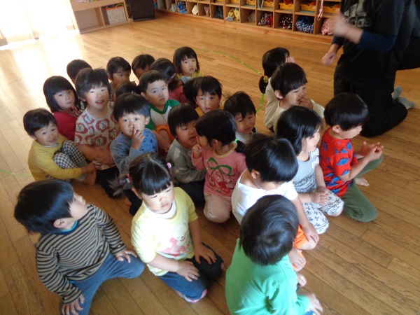 火災を想定した避難訓練でしたが、ベルが鳴ると速やかに保育者の近くへ集まることができましたよ。