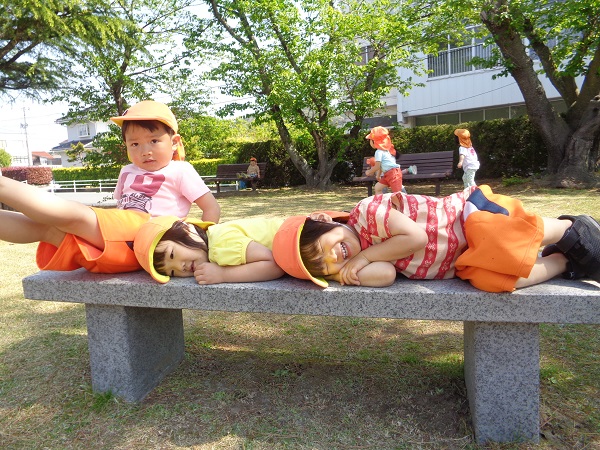 「先生写真撮って~」と、お友だちと仲良くポーズ✌