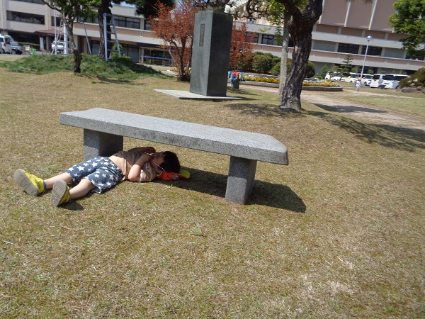 冷たいベンチの上でお昼寝しちゃお♪