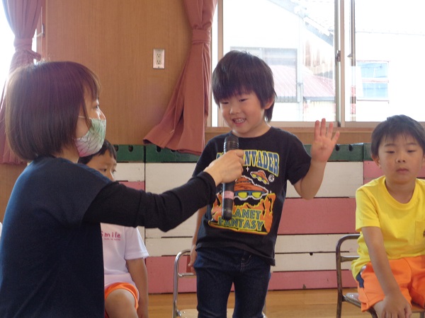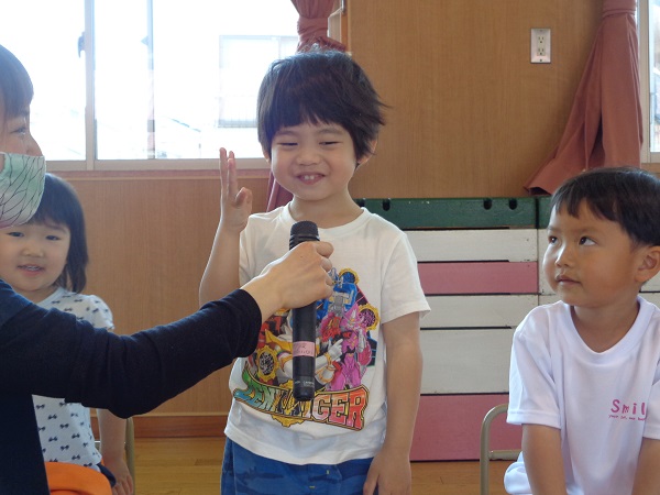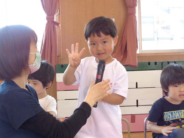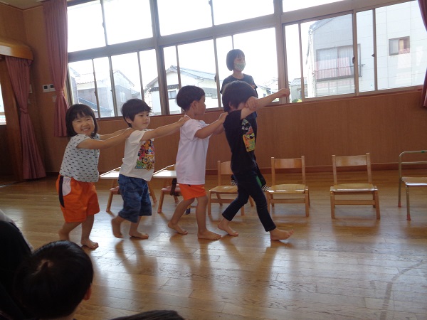 ばす組さんの主役は4人!!仲良く汽車になって登場です☺