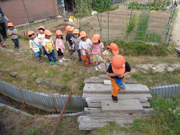 お友だちと手を繋いで、一緒に頑張って登ります。