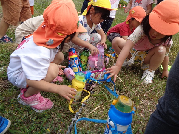 水筒が倒れていたら、お友だちのも直してあげていました。