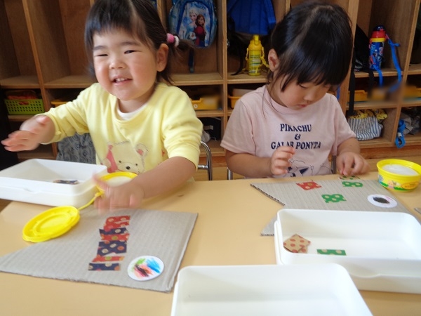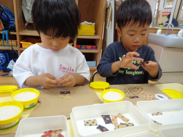 1の指に少しだけのりを付けることも、上手になっています。