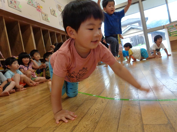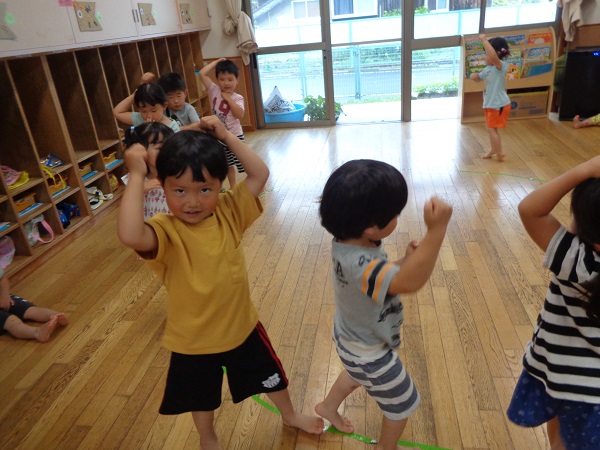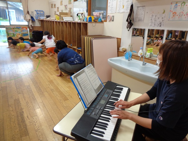 キーボードの音に合わせて、動物や虫に変身し身体を動かして楽しみました♪