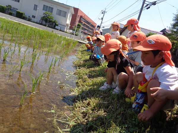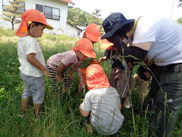 「カエルの赤ちゃんよね」「大きいのもおる~」と、目をキラキラと輝かせてみていました♬