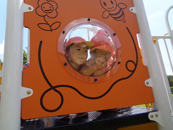 滑り台の上からひょっこり顔を出していて可愛かったです♡