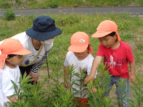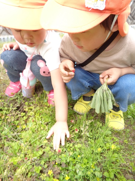 黒いバッタがおる!!子どもたちも保育者も大興奮■