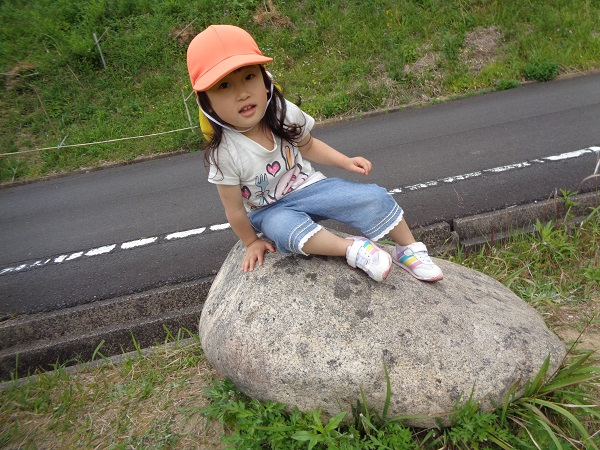 たくさん遊んで、大きな石の上でひと休み...♡