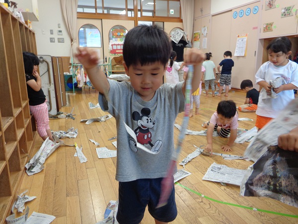 新聞紙を使って遊びました✨