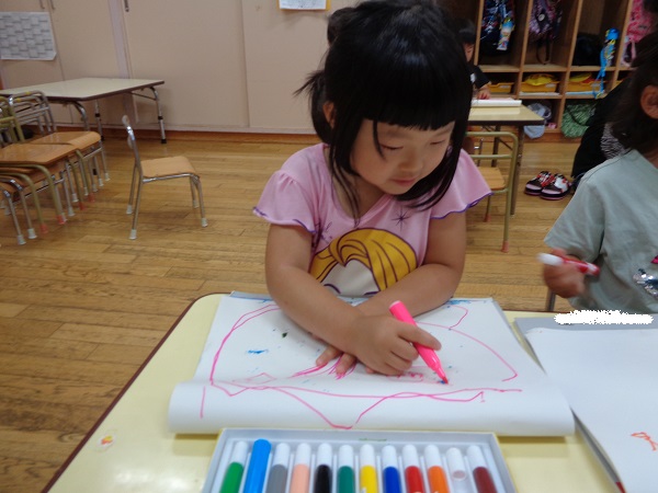 お絵描きでは、大好きなお父さんお母さんを描いたり、お勉強中!と字を書いてみたり...✐