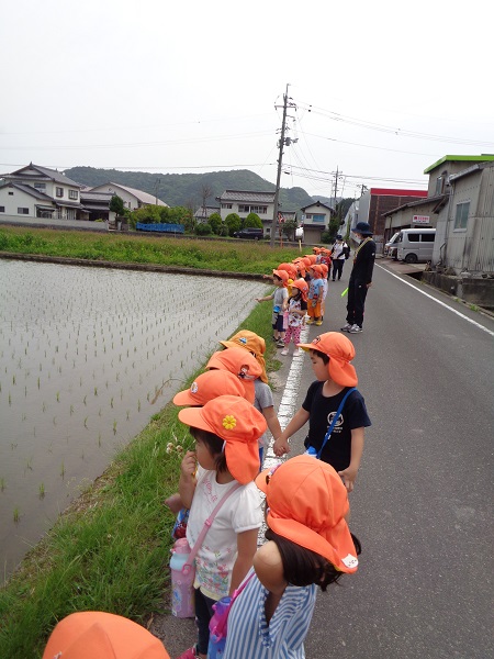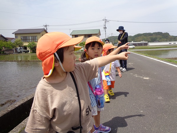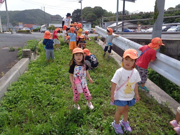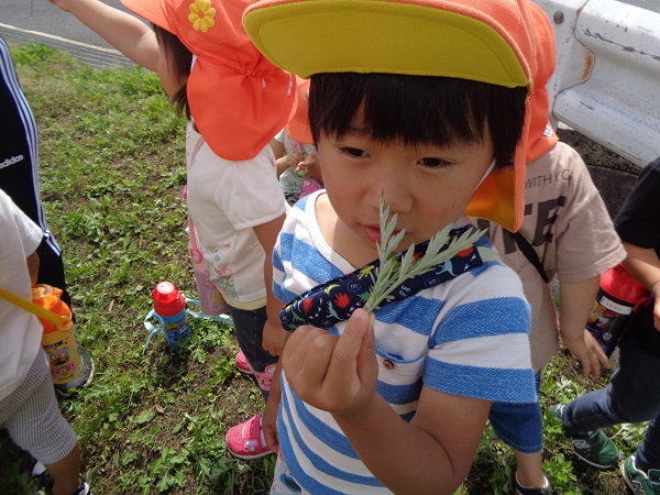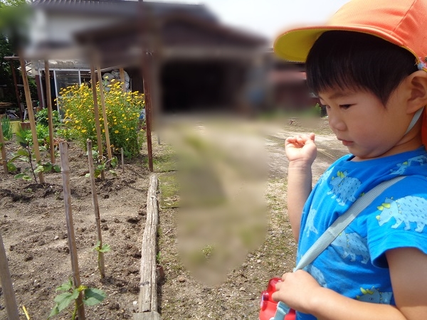 近くの民家の畑にナスが植えられているのも見つけて、「ばす組さんの畑と一緒だね☺」と喜んでいました♡