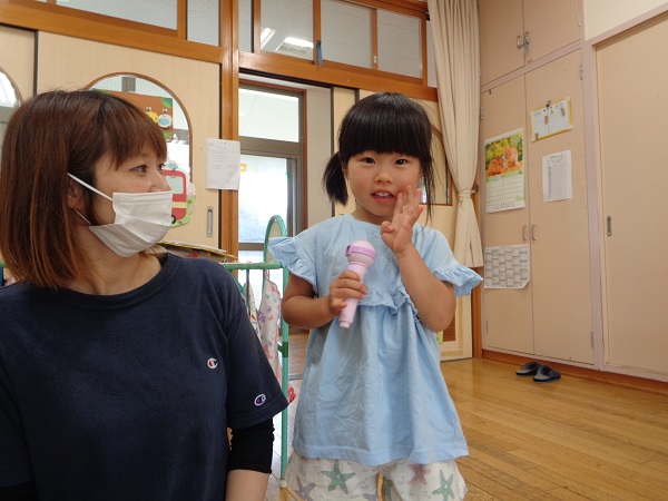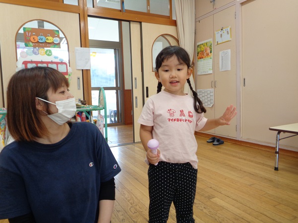 お名前や好きな食べ物、大きくなったら何になりたいか等、恥ずかしがることなく大きな声で教えてくれました☺