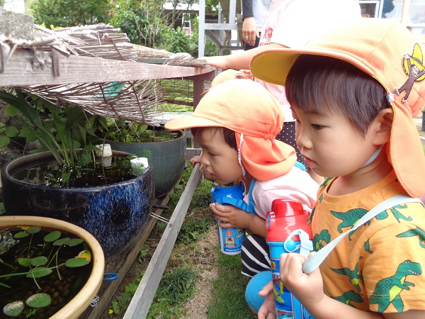 保育園に帰る途中に、近所の方が飼われているメダカを見せてもらいましたよ■