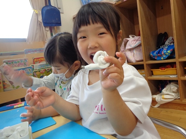 粘土遊びの時間にも「にょろろ」や「ハレちゃん」を作っちゃうくらい可愛がっています☺