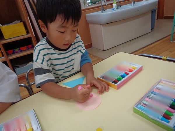 6月から簡単なお当番活動を始めようと思っているので、お当番表にかける自分の顔を描きましたよ!