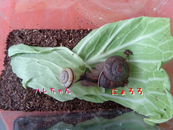 大きなカタツムリは「にょろろ」小さいカタツムリは「ハレちゃん」に決まりました♡