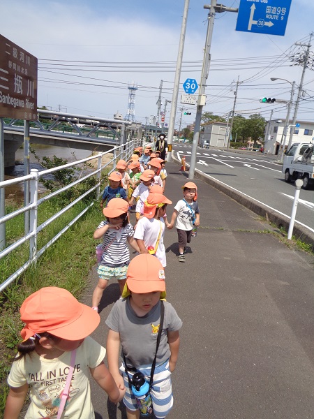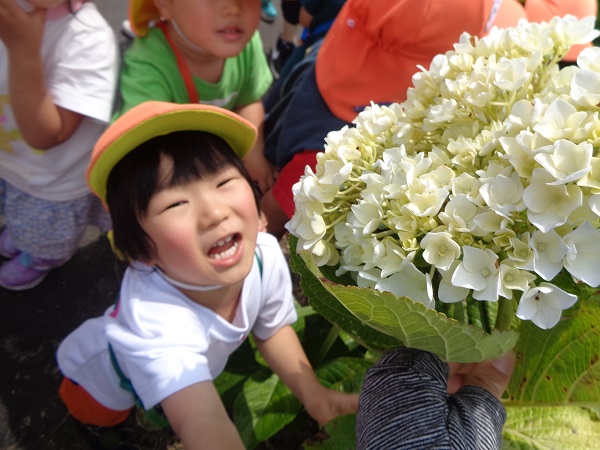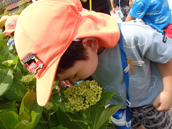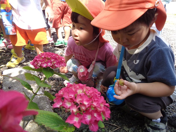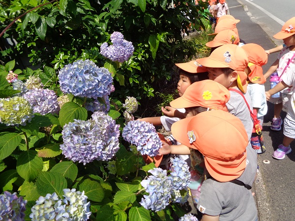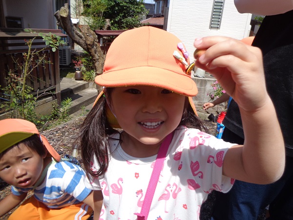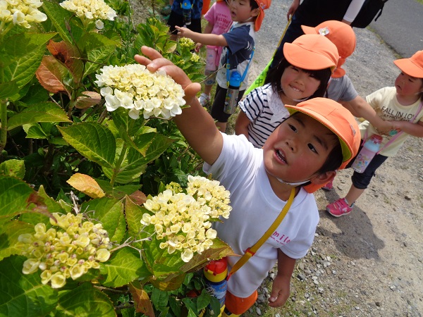 歩きながらさっそく面白いものを見つけたお友だちがいましたよ✨