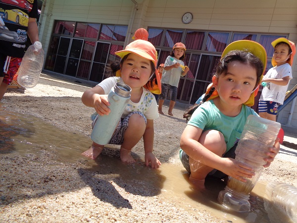 保育者のペットボトルシャワーに大喜び✨