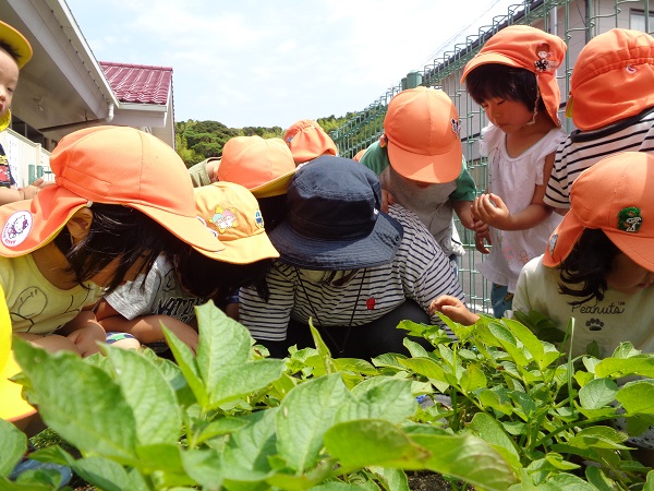 「草が野菜の栄養を取ってしまって、野菜が大きくならないこともあるんだよ」とお話をすると、「ダメ――――」と張りきって草を抜いてくれていました■