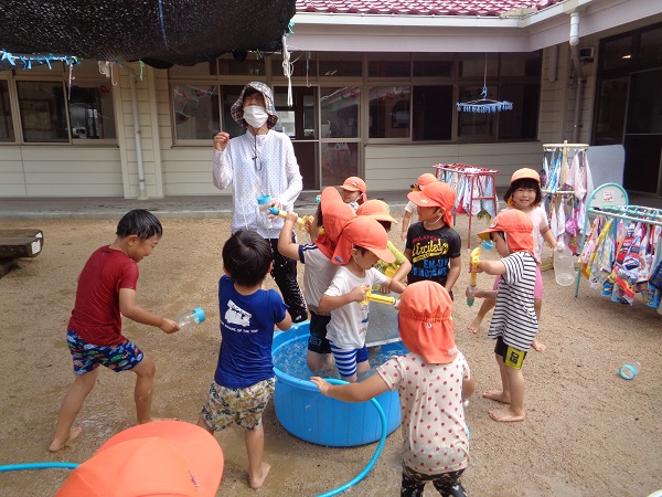 保育者も水着を着て応戦!濡れても大丈夫です(笑)