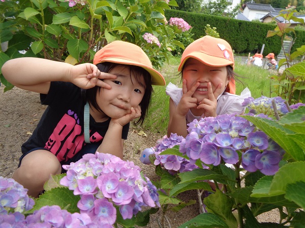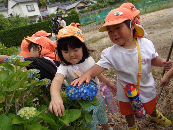 最近お散歩に出掛ける度に、色々な場所で紫陽花を見つけて喜んでいたばす組さん✿