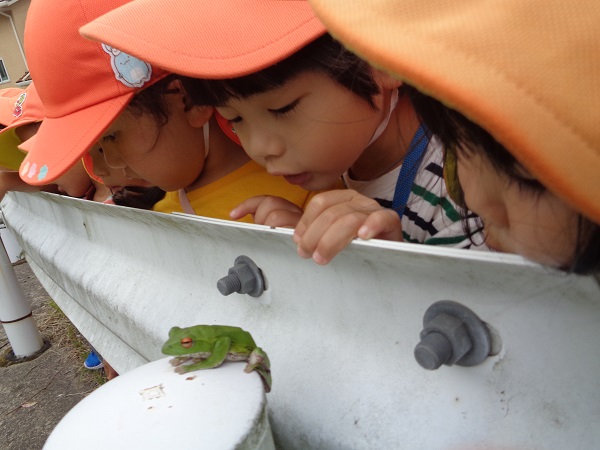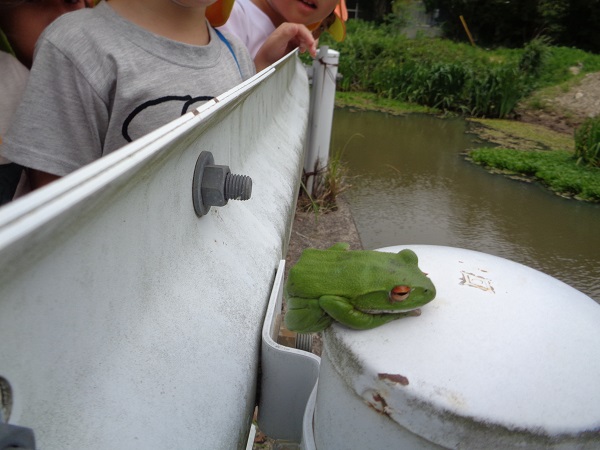 これにはみんな大興奮!!目の前で大騒ぎしても逃げることなく、サービス精神旺盛なモリアオガエルでしたよ(笑)