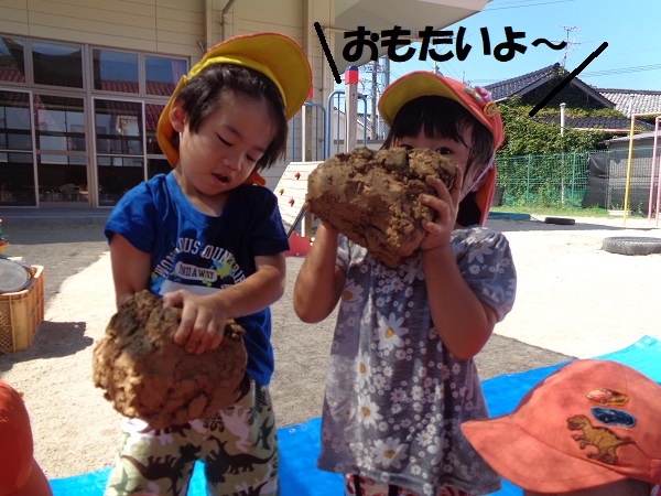 赤土の感触が苦手な子は小さな塊を少しほど触ってみましたよ■✨