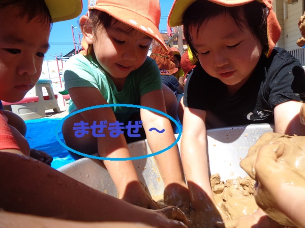 ムニュっとする感触が気持ち良くて、赤土を手で揉んだり足で踏んだり、全身を使ってパワフルに楽しむことが出来ました♡