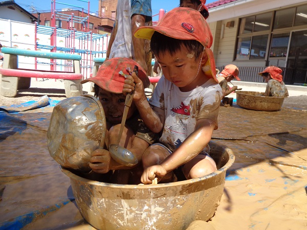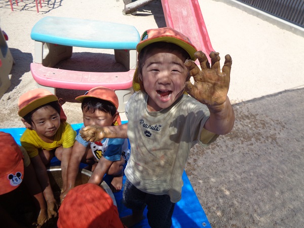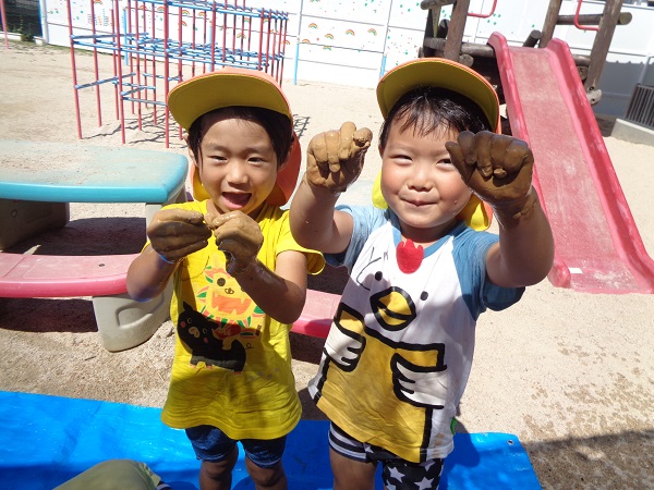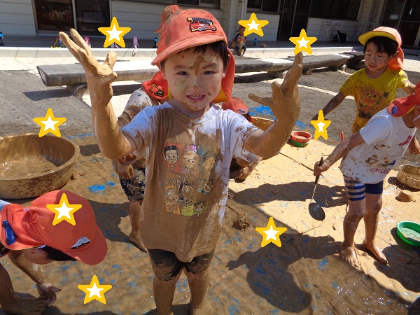 服がいつも以上に泥んこになっていますが子ども達が楽しんで遊んだ証です❤