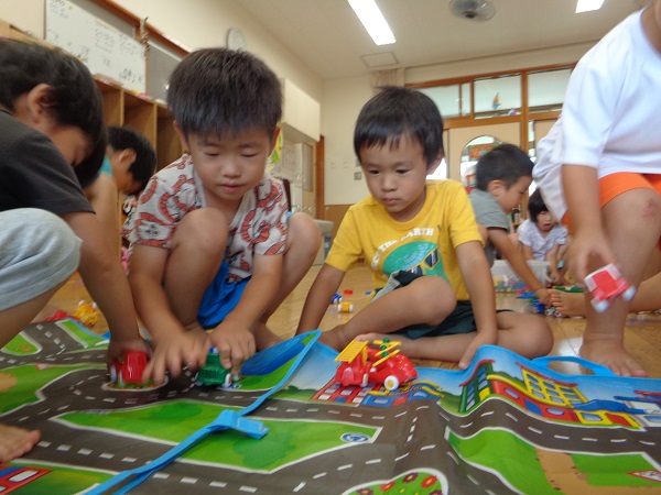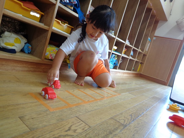 机で坂道を作ると「競争しようよ~」と、お友だちとタイミングを合わせて滑らせていましたよ■