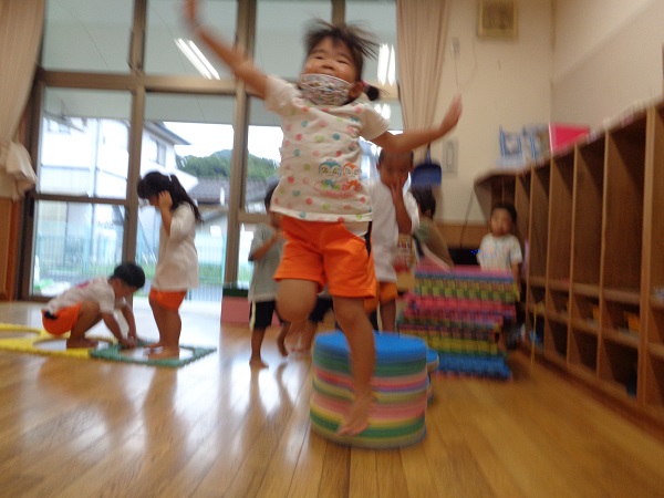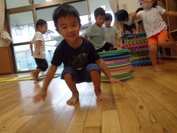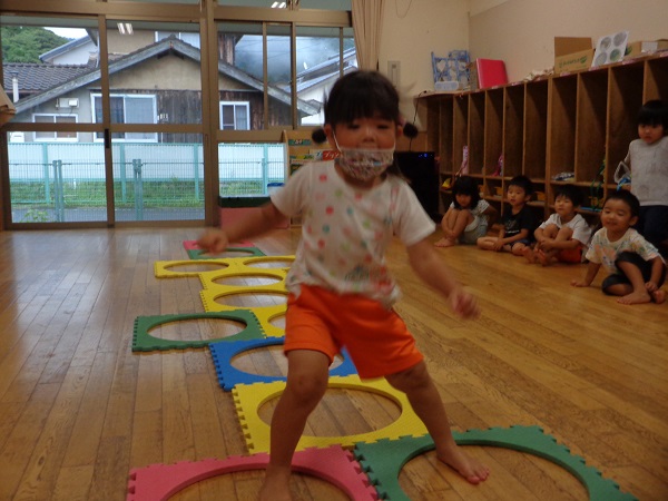 両足ジャンプはしっかりと両足で踏ん張って地面を力強く蹴って前進することで、バランス感覚が養われるそうですよ■