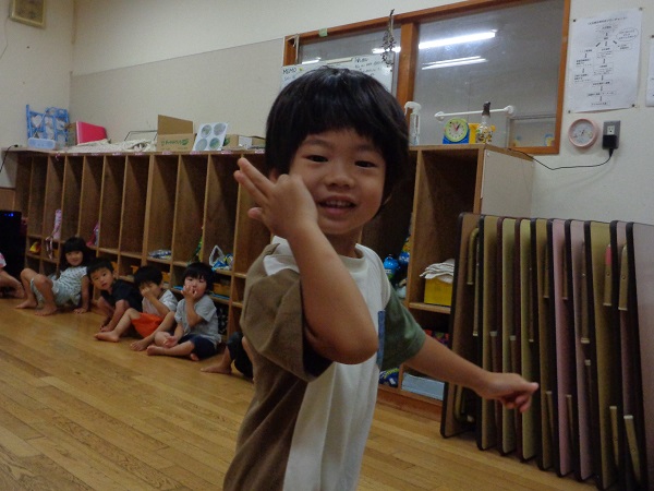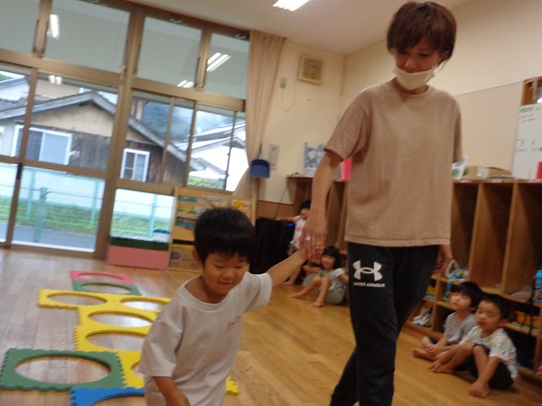 みんなに見られてちょっぴり恥ずかしい子は保育者と一緒にしました♪